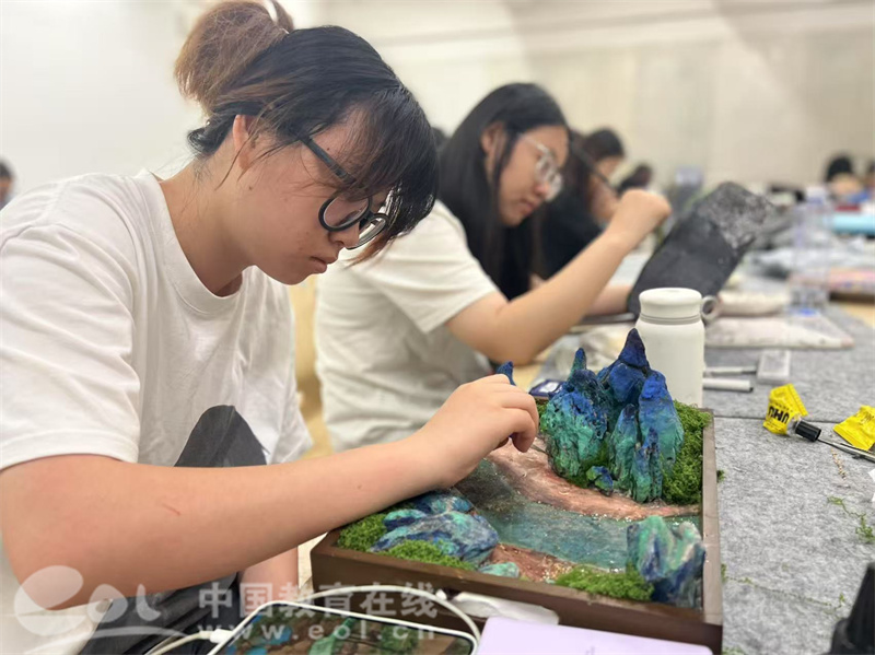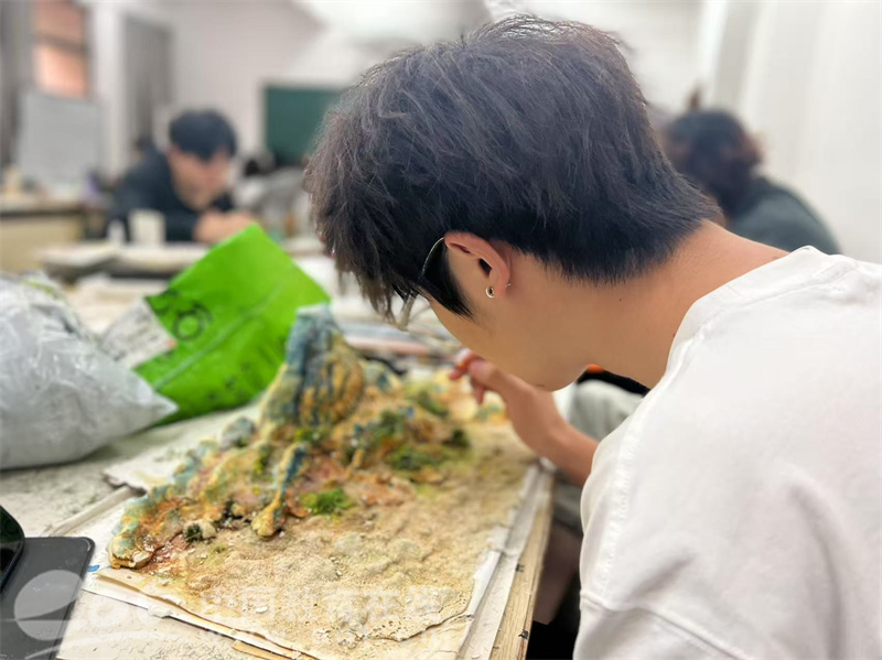 这是浙江工商大学杭州商学院艺术设计专业《富春山居微景观绘制》课程的教学成果。课程负责人王伟荣老师介绍,“我们的教学目标不仅限于传授绘画技法”,该课程设置了“文献研读-实地考察-材料采集-艺术创作”四位一体的实践教学环节。