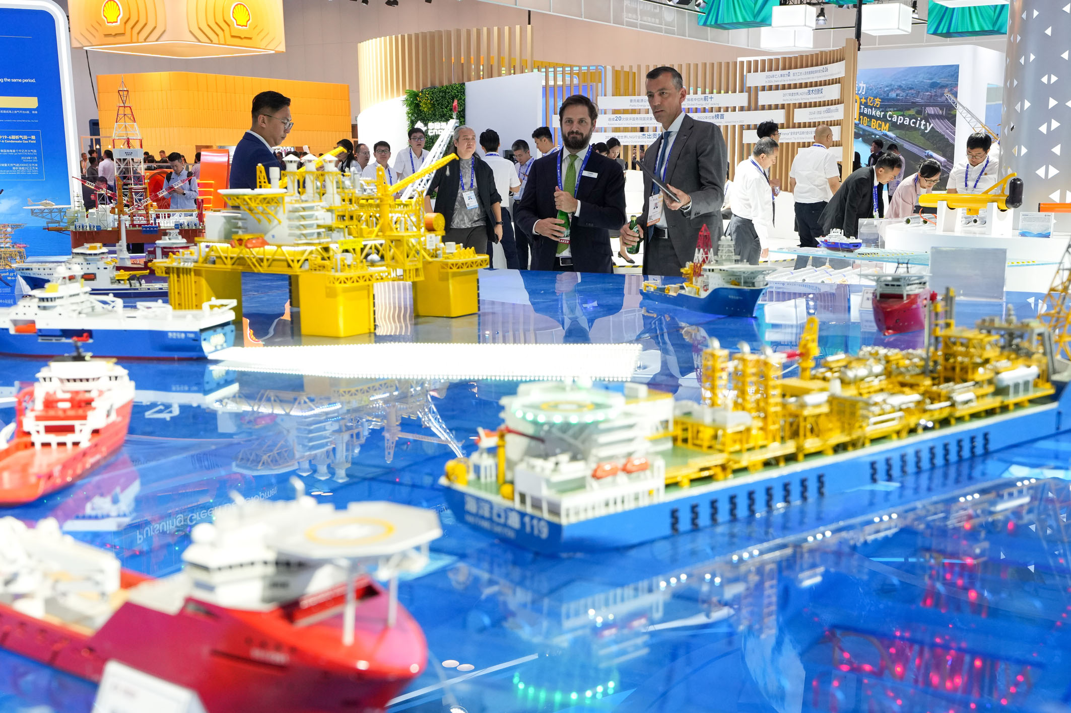 5月20日,在第29届世界燃气大会中国海油展区,几名外国与会嘉宾在参观。当日,以“赋能可持续未来”为主题的第29届世界燃气大会在北京国家会议中心举行,这是世界燃气大会首次在中国举行。据介绍,本届世界燃气大会将举办80余场高规格专题论坛,涵盖LNG发展、天然气与可再生能源耦合、能源安全、数字化转型等领域,400余位嘉宾将就行业趋势与技术革新展开深入交流。大会同时举办展览,面积达5万平方米,为历届世界燃气大会之最。