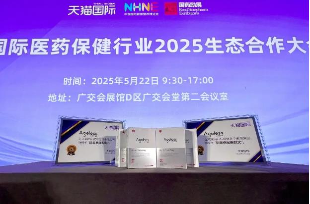 在广州NHNE展会天猫展台上,NYO3 抗衰产品线Ageless被天猫平台授予“抗衰突出贡献奖”和“抗衰品类舰长”奖项。其负责人冯娜谈到产品布局时透露道:“目前Ageless系列已推出“小金肽”、“小白钻”、“巢颜丸”、“极光美肤丸”等4款明星产品,未来计划扩充至20+种抗衰补剂,覆盖从肌肤年轻化到全身健康管理的全场景需求。”全球老龄化趋势逐年严峻,抗衰已成为全球命题。Ageless立足挪威研究中心,持续加码研发投入,以挪威长寿基因为核心,围绕外源性抗衰、内源性细胞修复及昼夜节律管理三大方向,构建多维度产品矩阵。