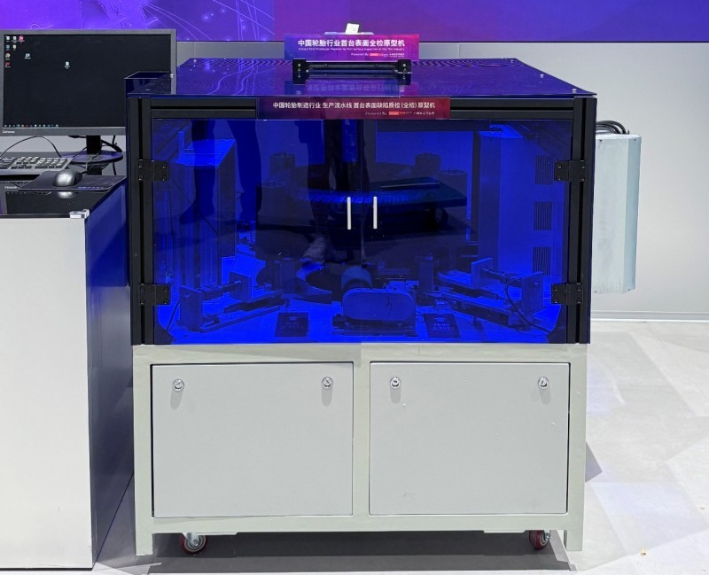 在机械结构设计上,系统可适配不同轮胎尺寸范围,满足不同SKU混检需求,并将相关光学模组和上下料结构进行系统融合,大幅提升单胎检测效率,打造出国内首台支持轮胎全检混检的外观AI检测设备。