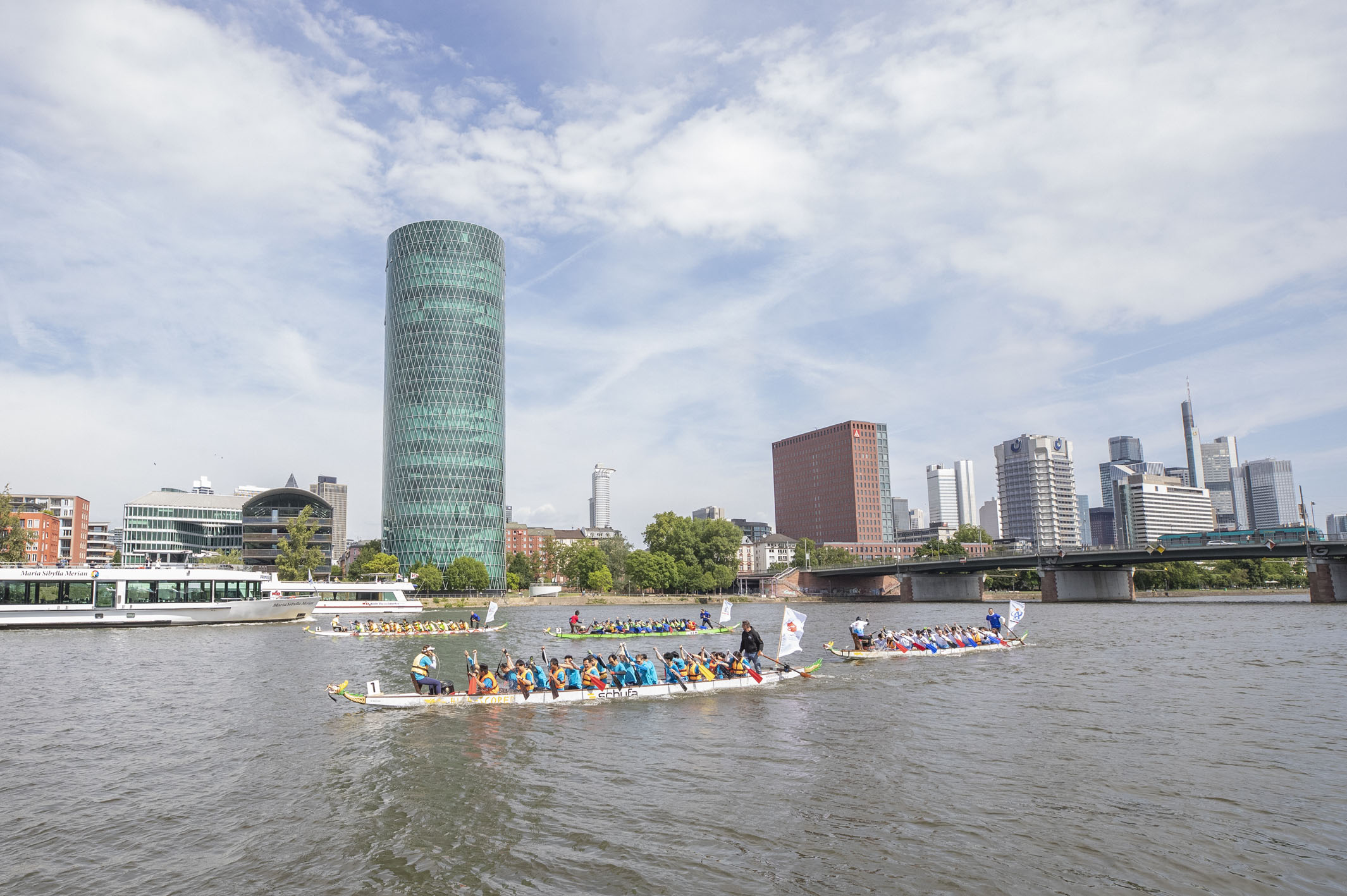 端午将至,人们在德国法兰克福美因河上参加第二届法兰克福国际龙舟友谊赛。