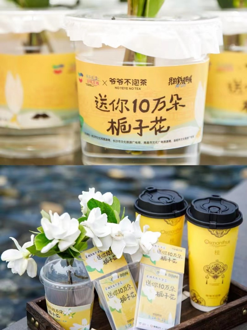 作为武汉本地品牌,“爷爷不泡茶”通过视觉装置合作、场景共创等方式参与其中,以“街头开花”的形式表达对这场送花行动的共鸣。在长沙、南昌等联动城市,品牌也围绕栀子花主题同步推出城市物料与传播内容,以“城市在送花,我们送你夏天的味道”的方式,与更多城市共同回应这场城市情绪。