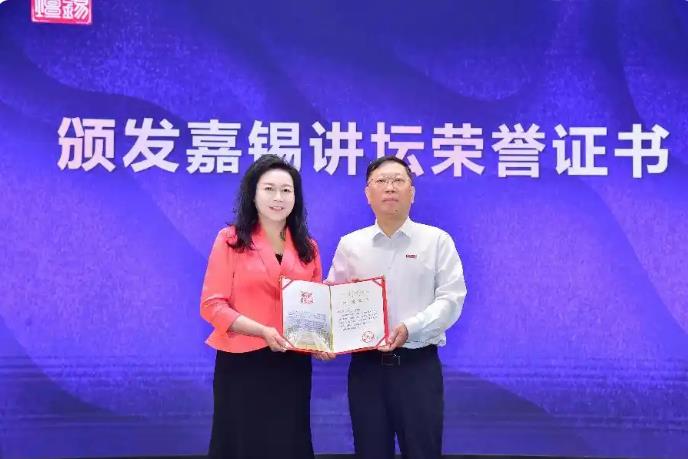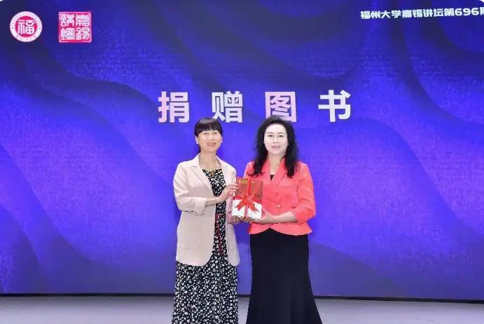 分享会上,福州大学向王晶颁发嘉锡讲坛荣誉证书。同时,王晶将系列书籍捐赠给福州大学图书馆。(邱郁雯)