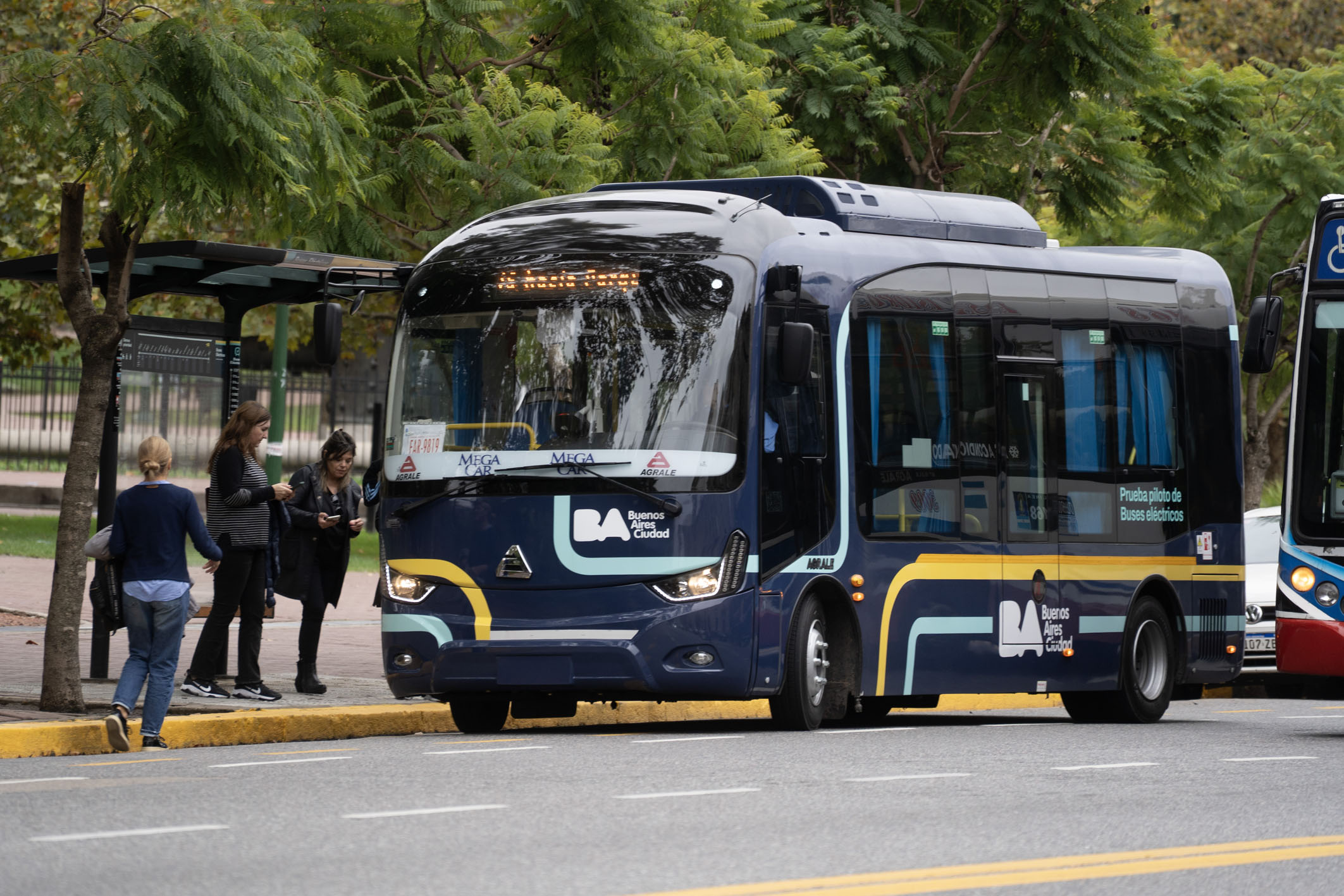 由中国生产的纯电动公交车近日在阿根廷首都布宜诺斯艾利斯投入运营。图为乘客在阿根廷布宜诺斯艾利斯街头登上电动公交车。