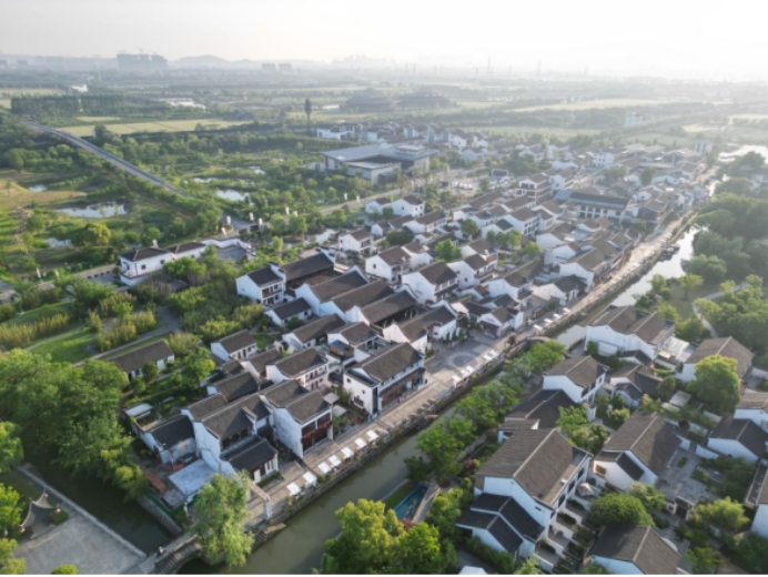 在湖州市吴兴区的钱山漾遗址,一座小村庄正焕发新的生机,那便是由中建一局华江公司承建的湖州潞村村落风貌改造项目。潞村项目以“保护为基、文化为魂、共富为核”,实现了传统村落从“静态”到“动态”的跨越——既守住了“绿水青山”的生态本底与“乡愁记忆”的文化根脉,又通过产业创新与治理升级,将生态资源转化为“金山银山”的持续动能,走出了一条“两山”理论的进阶之路。