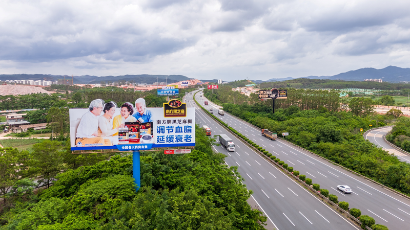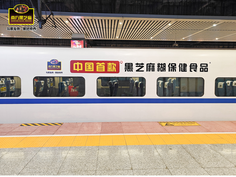 2025年,正值南方黑芝麻集团(以下简称“南方黑芝麻”)成立41周年之际,国货老字号南方黑芝麻开展了一场覆盖全国高铁网络与广西核心高速路网的创新广告投放。通过高铁列车冠名广告与高速公路异型广告的立体化布局,南方黑芝麻不仅强化了其“乌黑发亮·黑色食养”的品牌定位,更以震撼的视觉冲击力与高频触达率,向消费者传递了品牌实力与魅力。