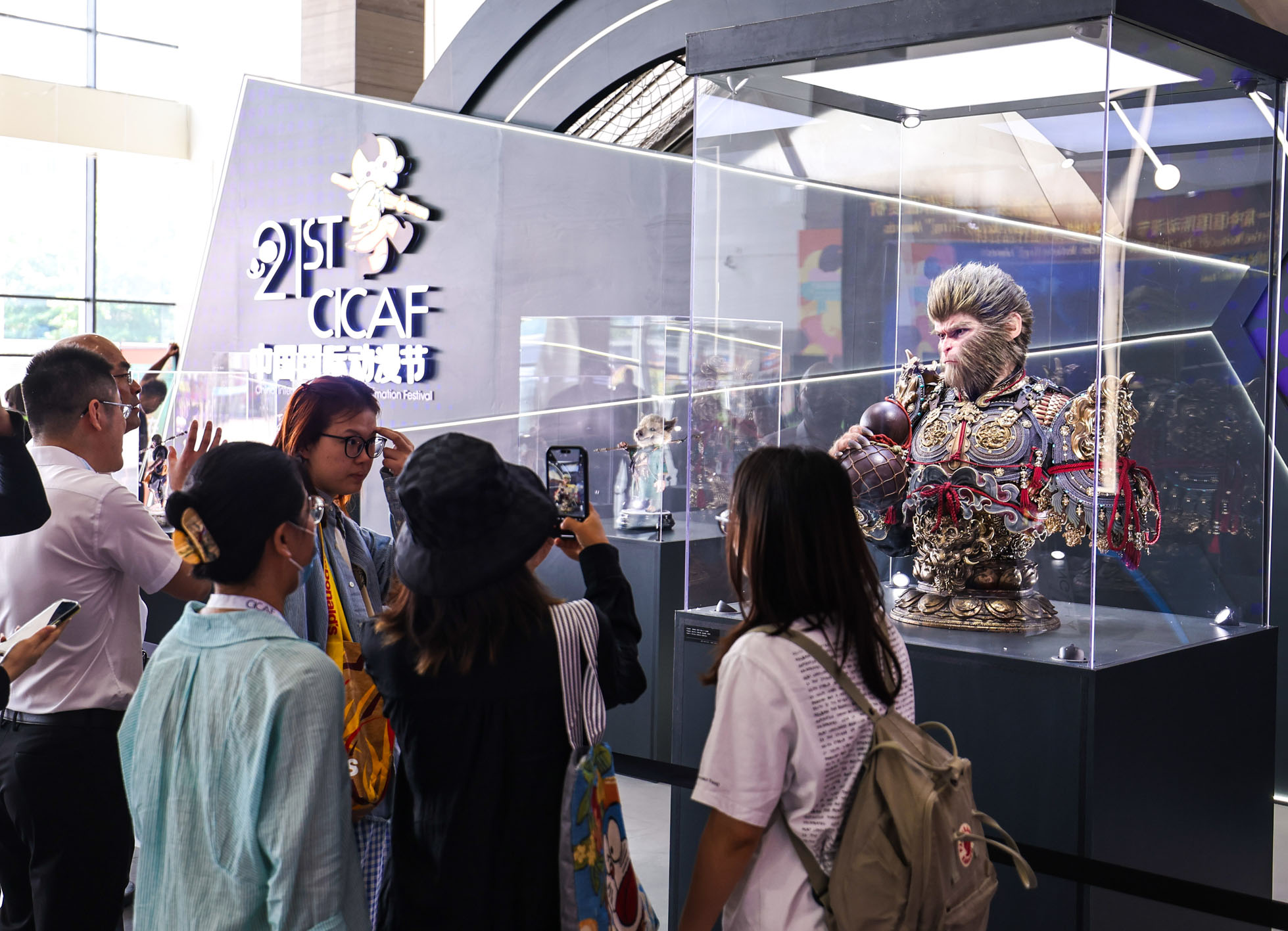 5月29日,观众在第二十一届中国国际动漫节现场参观黑神话悟空主题展陈。当日,第二十一届中国国际动漫节在浙江杭州开幕。