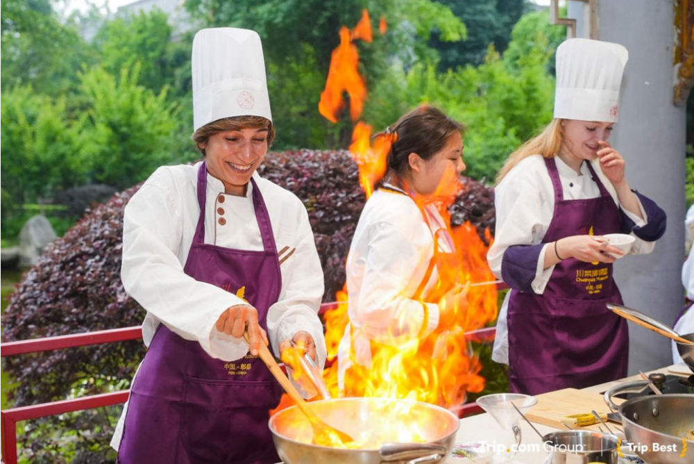 海外旅行商在川菜博物馆学习宫保鸡丁的做法