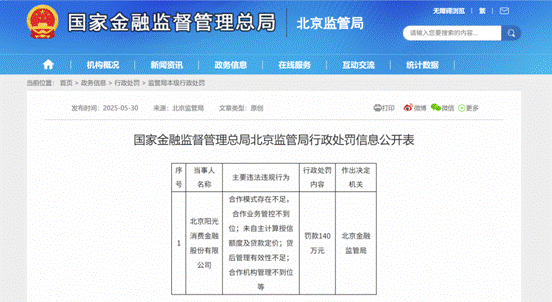 近日,据国家金融监督管理总局北京监管局披露的行政处罚信息,北京阳光消费金融股份有限公司(以下简称“阳光消金”)因一系列违规行为被罚140万元。这也是年内消费金融机构收到的又一张百万元级罚单。