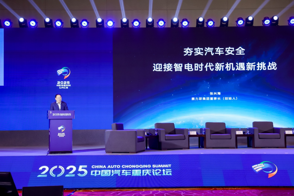 2025中国汽车重庆论坛现场,赛力斯集团董事长(创始人)张兴海发表演讲。(活动主办方供图)