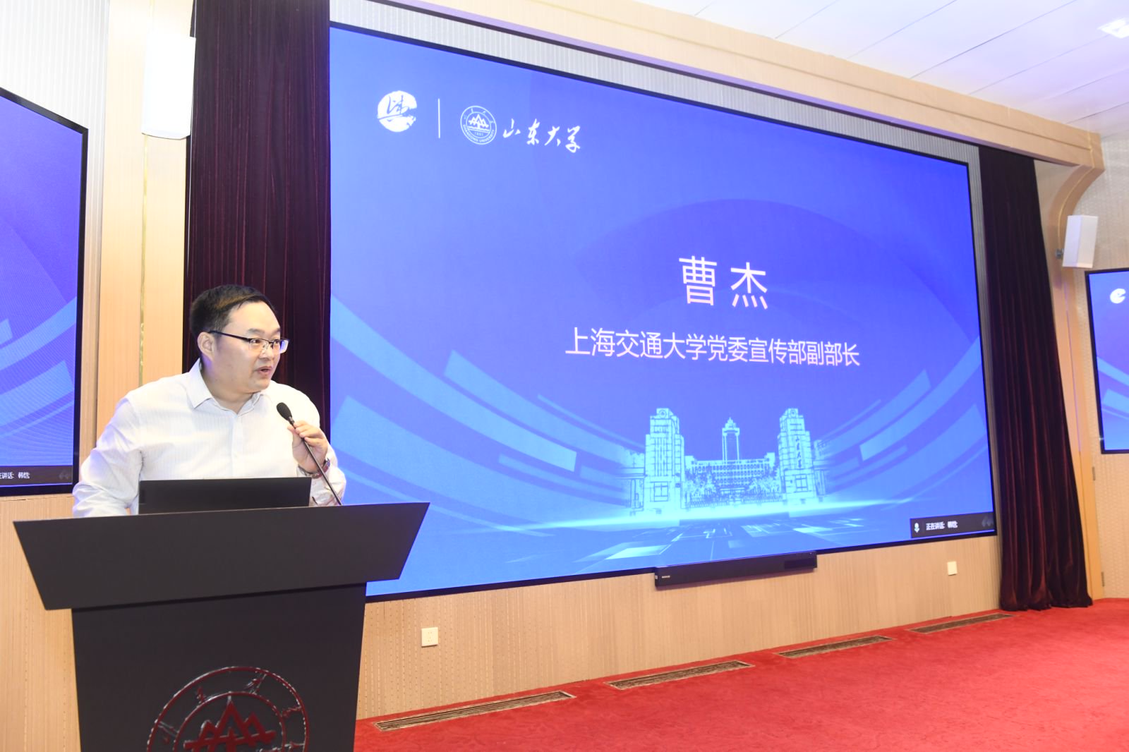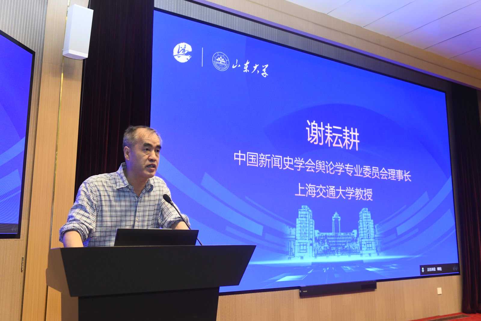 山东大学党委常委、宣传部部长张帅,中国新闻史学会会长、中国传媒大学新闻学院院长隋岩,上海交通大学党委宣传部副部长曹杰,中国新闻史学会舆论学专业委员会理事长、上海交通大学媒体与传播学院教授谢耘耕出席开幕式并致辞。开幕式由山东大学新闻传播学院党委书记孙宜山主持。
