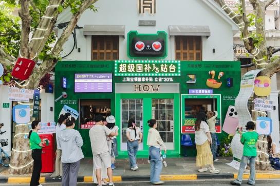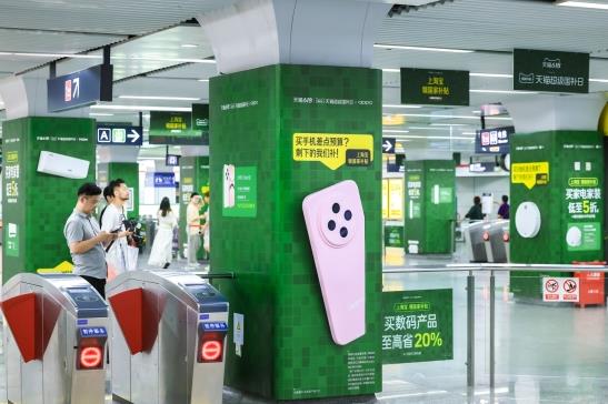 6月8日,天猫超级国补日联合20余家家电、家装、3C品牌在上海愚园路和杭州凤起路地铁站打造创意快闪活动。现场的商品装置破墙而出,呈趣味3D效果,表达五分之一优惠已到手,而剩下的部分可上淘宝领取平台补贴,叠加使用享受优惠价格。