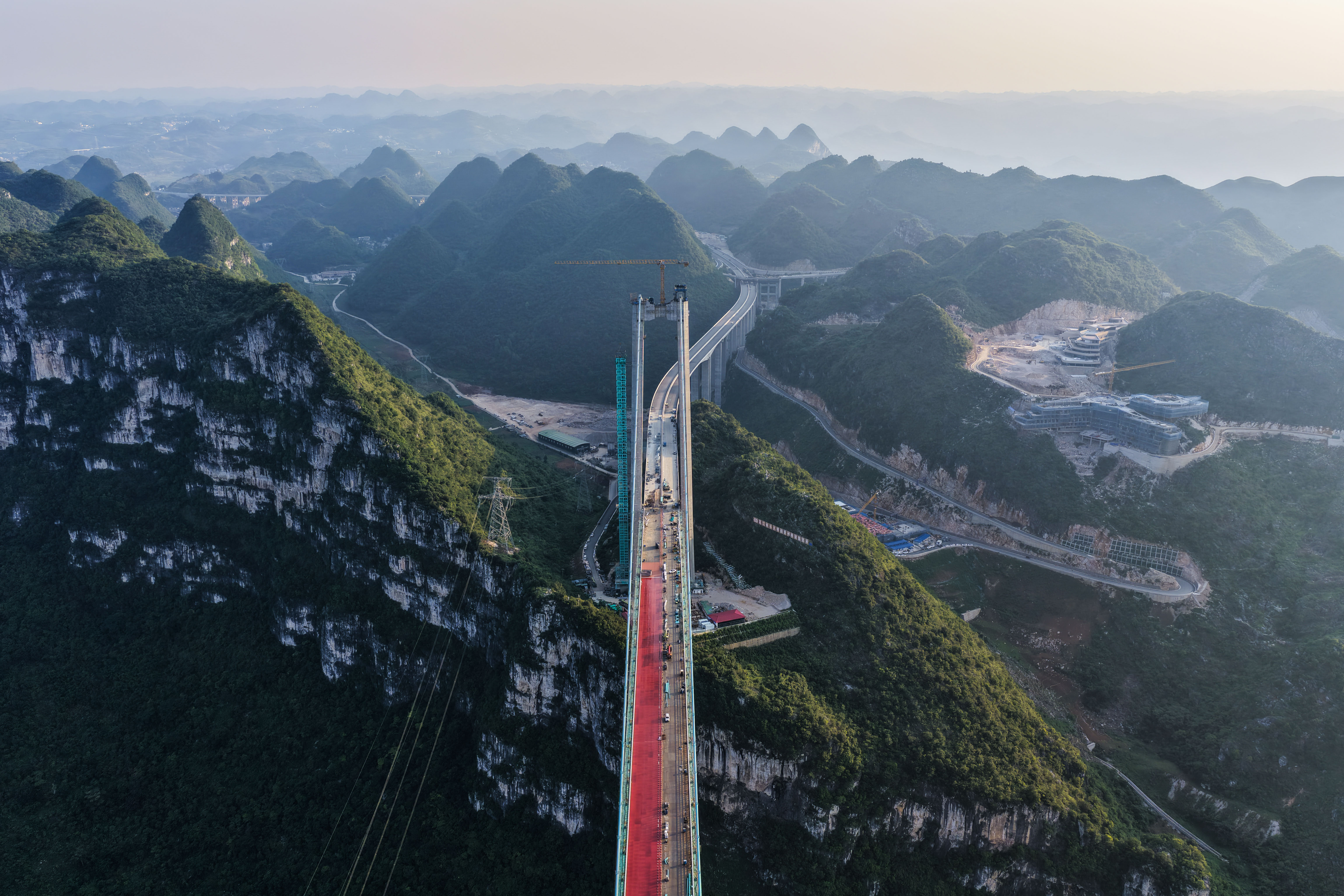 6月12日,贵州花江峡谷大桥的猫道拆除完毕,标志着这座在建世界最高桥又完成一个重要施工节点,为9月底具备通车条件奠定坚实基础。图为日前拍摄的花江峡谷大桥(无人机照片)。 新华社记者 杨文斌 摄