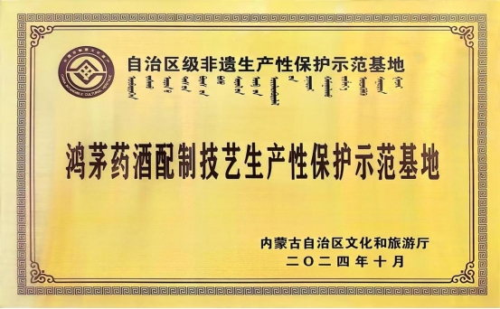 6月14日,在内蒙古自治区“文化和自然遗产日”主会场活动中,鸿茅药酒配制技艺生产性保护示范基地被正式授予“自治区级非遗生产性保护示范基地”称号并颁发牌匾。