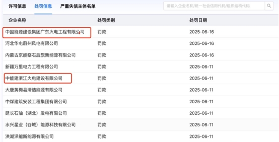 近日,信用能源官网发布处罚信息公示,中能建浙江火电建设有限公司(以下简称“浙江火电公司”)、中国能源建设集团广东火电工程有限公司(以下简称“广东火电公司”)因违法违规行为被国家能源局区域监管局责令限期改正并罚款。