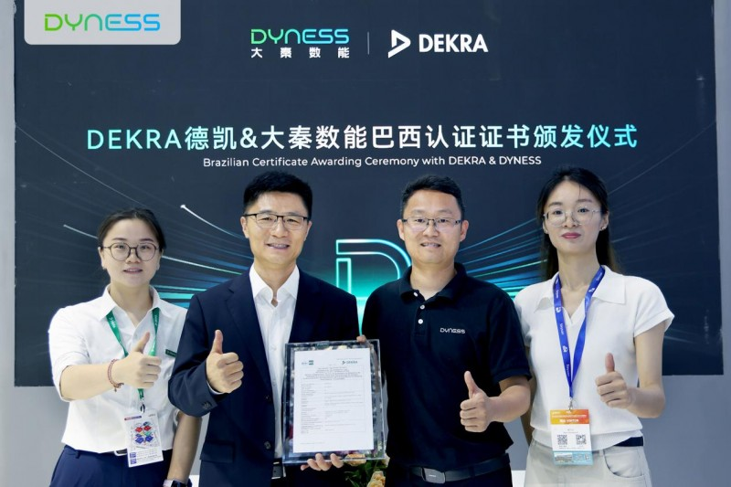 开展首日,TÜV南德团队莅临其展台并为之颁发欧盟新电池法规认证证书(TÜV南德认证为能源行业“全球八大认证”之一),DEKRA德凯追加授予其“巴西ORDINANCE No.140认证”。大秦数能在完成能源行业权威认证拼图路上持续发力,不断跃升,大秦数能旗下产品一直遵循国际市场准入标准。