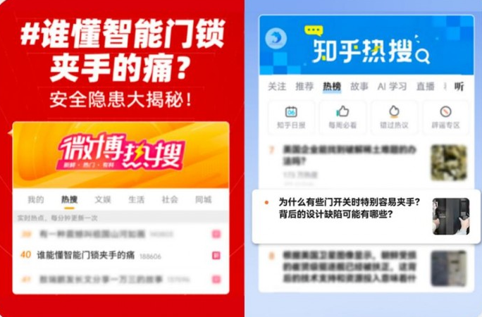近日,“谁懂智能门锁夹手的痛”的相关讨论迅速在微博、知乎等平台登上热搜榜单,引发网友对智能门锁使用安全问题的关注。