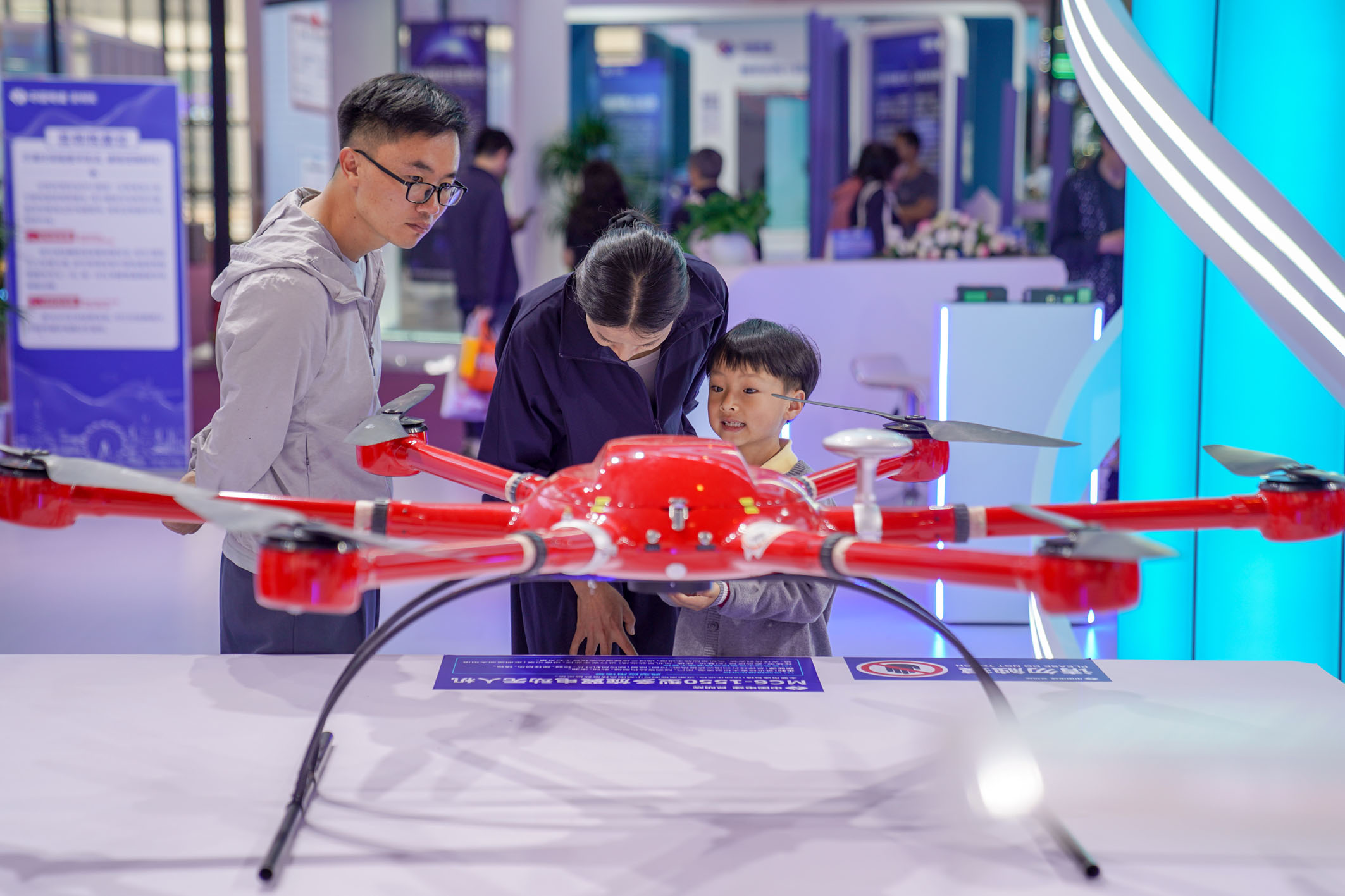 6月22日,观众在第9届南博会上参观一款无人机。第9届中国—南亚博览会于6月19日至24日在云南昆明举行。本届南博会上,数字经济、人工智能、绿色能源、低空经济等高科技展品琳琅满目,吸引众多观众参观体验。