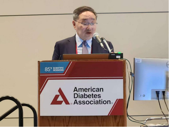 图:北京大学人民医院教授纪立农做报告 资料来源:公司供图