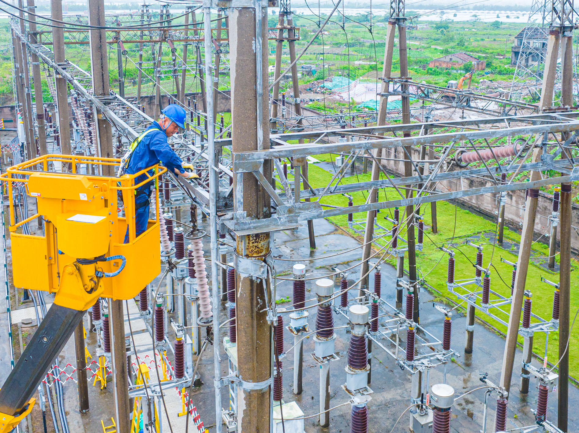 夏季高温炎热,电网迎峰度夏面临考验。为确保夏季用电安全,浙江台州电网技术改造跑出“加速度”,目前全市715个配网工程正全面铺开。图为国网台州供电公司工作人员对110千伏松门变电站进行改造升级。项目完成后,该变电站年供电量预计可达3.7亿千瓦时,供电能力提升40%以上,实现供电可靠性和设备本质安全的双重跃升。