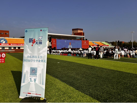 “四年前,恰逢山东科技大学建校70周年,你们进入大学开启青春逐梦之旅。这四年,同学们与学校风雨同舟、荣光与共,大家从2021到2025的成长轨迹,将永远记录在母校的‘日志’上。”山东科技大学校长曾庆田在致辞中,深情回顾了学生们的大学时光:四年间21356本图书借阅、5043项省级以上竞赛获奖的成长轨迹,600余场文艺演出、800余场体育赛事、1000余场公益活动等美好回忆……他向毕业生提出“十年之约”:“以2025为起点,以2035为约期,让我们向未来启航,共赴一场十年之约!”