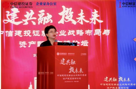 中信建投证券企业家办公室秘书长、财富委高净值客群发展中心负责人金姣介绍了建投·柏年综合服务体系。该体系通过整合集团和公司资源,为企业及个人提供从顶层设计、战略规划到具体执行的全周期、全链条服务,涵盖个人财富管理、家族传承、企业经营和社会责任等,打造了一站式企办服务模式。
