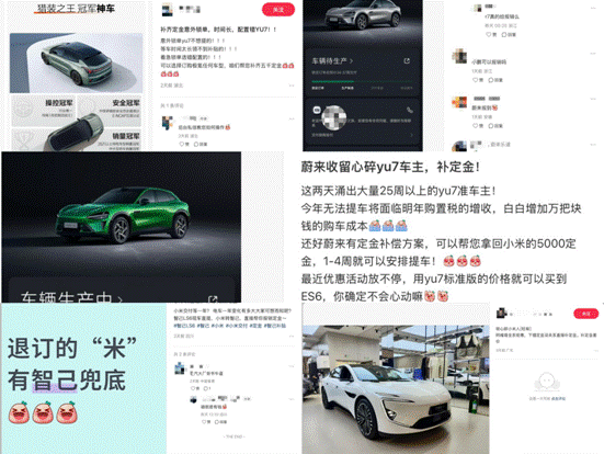小米YU7交付周期较长也让其他一些汽车品牌销售抓住了机会。记者发现,极氪、蔚来、智己、阿维塔等多家车企的一些销售人员在网络上表态,转定自家品牌,愿为用户全额承担5000元定金损失。