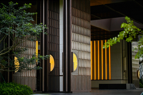 主入口大门设计融合了岭南文化元素,特邀国家级非遗铜艺传承人参与,在铜门上以手工锤纹工艺呈现岭南人文特色,使传统工艺在当代建筑中焕发活力。门楼中心区域的设计灵感汲取自广州关西大屋“四水归堂”的空间意境,彰显了对岭南文化的深耕与传承。