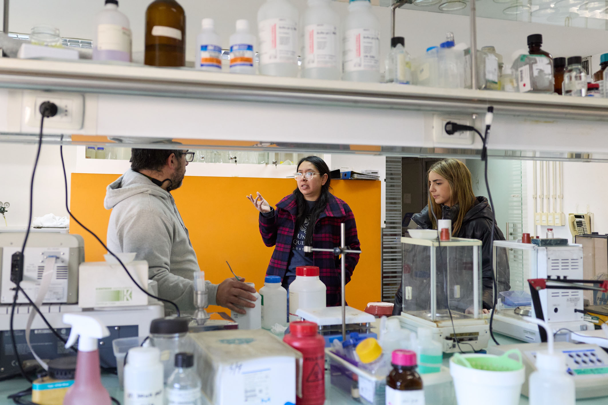 中国-乌拉圭生物纳米制药联合实验室揭牌仪式近日在位于乌首都蒙得维的亚的乌拉圭共和国大学举行。联合实验室聚焦纳米材料与技术的重大关键问题,开展前瞻性研究。图为在乌拉圭蒙得维的亚,研究人员在中国-乌拉圭生物纳米制药联合实验室内讨论。