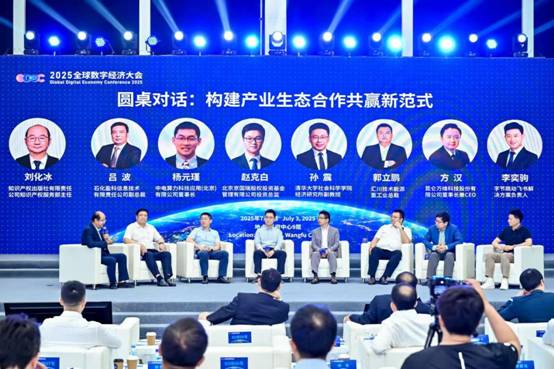 圆桌对话环节由知识产权出版社有限责任公司知识产权服务部主任刘化冰主持,7位来自高校、企业、服务机构和投资机构的嘉宾聚焦“构建产业生态,合作共赢新范式”展开深入讨论。石化盈科副总裁吕波提出搭建开放技术平台,拉动中小供应商协同创新;中电算力董事长杨元瑾分享了面向国家“东数西算”战略、AI安全、安全算力需求,打造安全可信算力异构平台;京国瑞基金投资总监赵克白分享资本青睐的“技术标准化+可持续回报”模式;汇川技术能源重工业总裁郭立鹏分享了能降低接入门槛的工业自动化“即插即用”方案;昆仑万维科技董事长兼CEO方汉提出开源策略加速AI开发者生态繁荣;清华大学副教授孙震提出数据确权与信任机制是数智时代共赢核心;字节跳动飞书解决方案负责人李奕驹分享了工具重构组织协作如何穿透产业链信息孤岛。