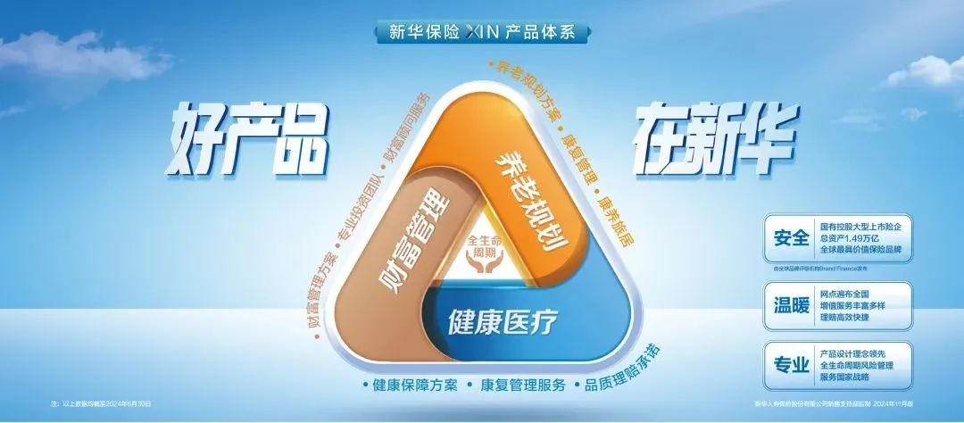 新华保险深刻洞察当下消费者多元化、个性化的保险需求,始终践行“好产品在新华”的品牌理念,构建覆盖客户全生命周期的产品体系,推动保险产品从“可选配置”升级为现代家庭的“筑基资产”,守护千家万户的美好生活。