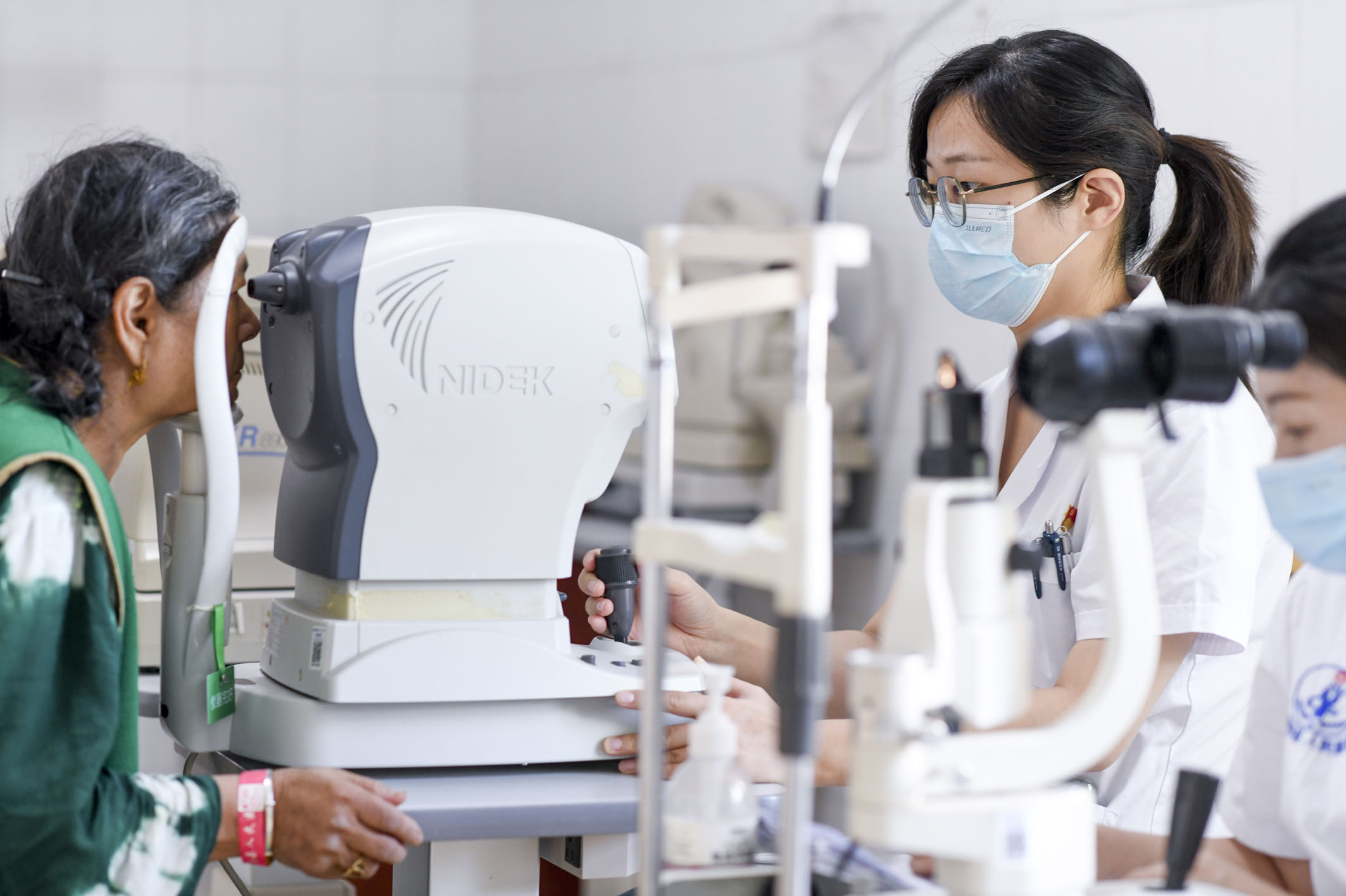 近年来,对口援疆省市持续选派大量医疗人才,为守护新疆各族群众生命健康作出了突出贡献。受益于医疗人才“组团式”援疆支持,新疆受援医院临床救治能力大幅提升,医院管理体系不断完善,新疆各族群众的健康获得感不断提升。图为在新疆喀什地区英吉沙县人民医院,来自山东省济宁市兖州区人民医院的援疆医生石文芳(中)为患者检查。