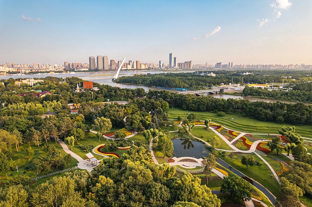 太阳岛风景区景色(无人机照片)。新华社记者王松 摄