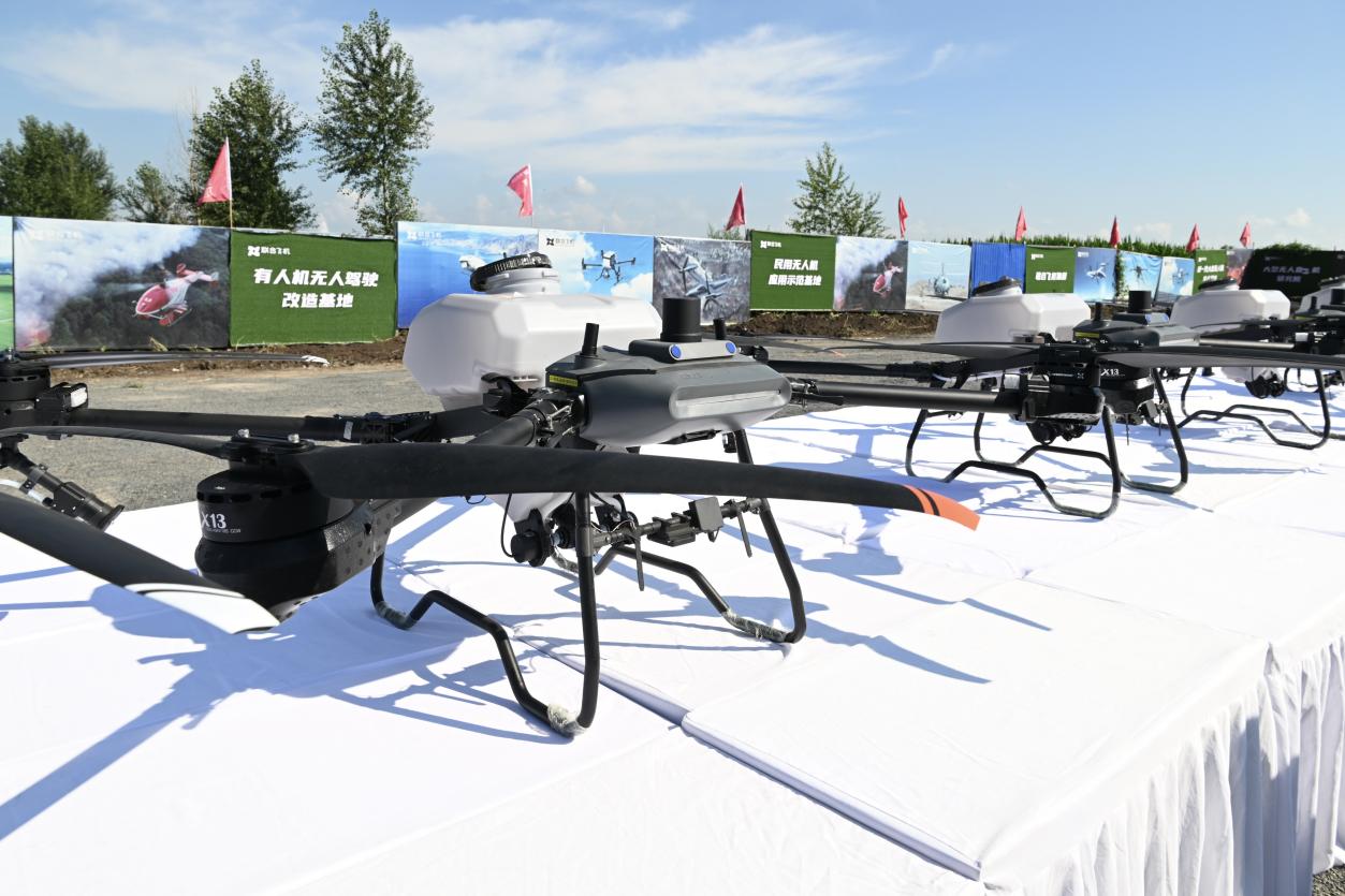 黑龙江省哈尔滨市平房区的联合飞机基地的Q100农业无人机。新华社记者王松 摄