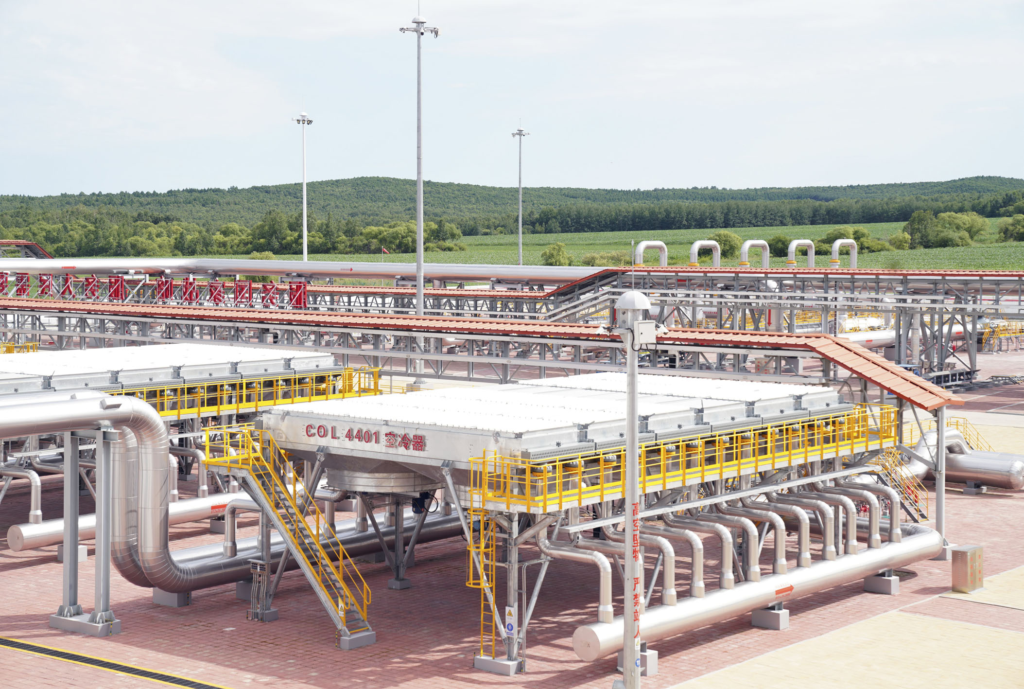 图为“北气南下”能源大通道黑河首站的空冷器。
