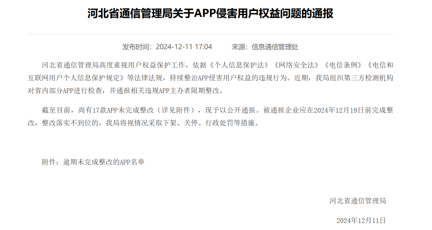 河北通信管理局官网截图