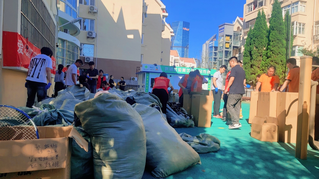 启动仪式后,15:50至16:30进入紧张有序的物品分拣环节。在专业指导下,青岛衣旧爱志愿者中心志愿者与市南区青年企业家商会代表、街道工作人员混合编组,高效协作。大家严格对照《捐助物品清单》,对种类丰富的捐赠物资进行了细致的分类、整理与清点。