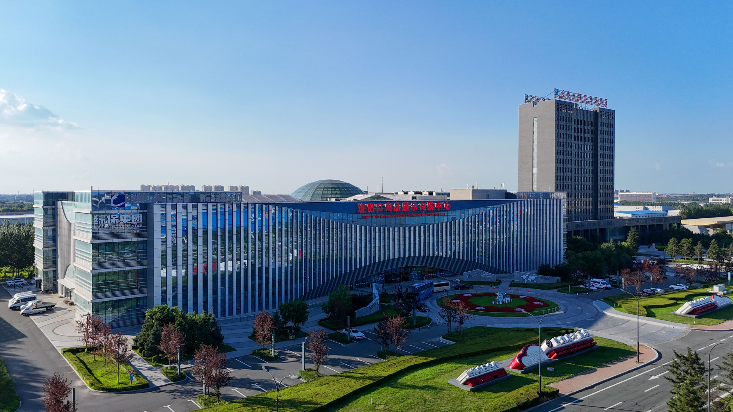 7月14日拍摄的长春兴隆进出口商品展示交易中心(无人机照片)。作为吉林省首个综合保税区,长春兴隆综合保税区按照“物流先导、产业支撑、贸易激活”的发展思路,初步形成了集综合保税、国际陆港、进出口商品展示交易功能于一体的“一区一港一中心”发展格局。目前,区内“长满欧”(长春—满洲里—欧洲)、“长珲欧”(长春—珲春—欧洲)等班列常态化运行。进出口商品展示交易中心汇集近60国万余种商品,2024年销售额达1.63亿元。