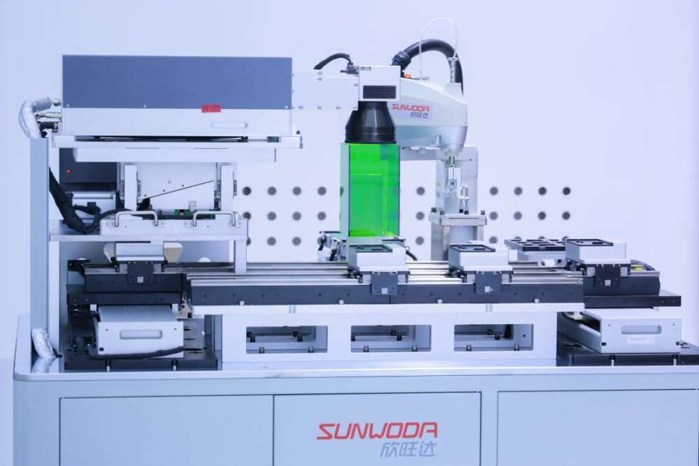 图为欣旺达展示的磁悬浮输送产线