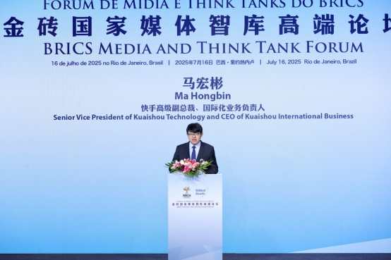 7月16日,以“共创金砖未来 共谱南方新篇”为主题的金砖国家媒体智库高端论坛在巴西里约热内卢举行。快手高级副总裁、快手国际化业务负责人马宏彬在开幕式上分享了快手海外版Kwai在巴西市场的探索与实践,立体展现了中国科技企业对于推动全球南方国家数字经济发展的观察和思考。