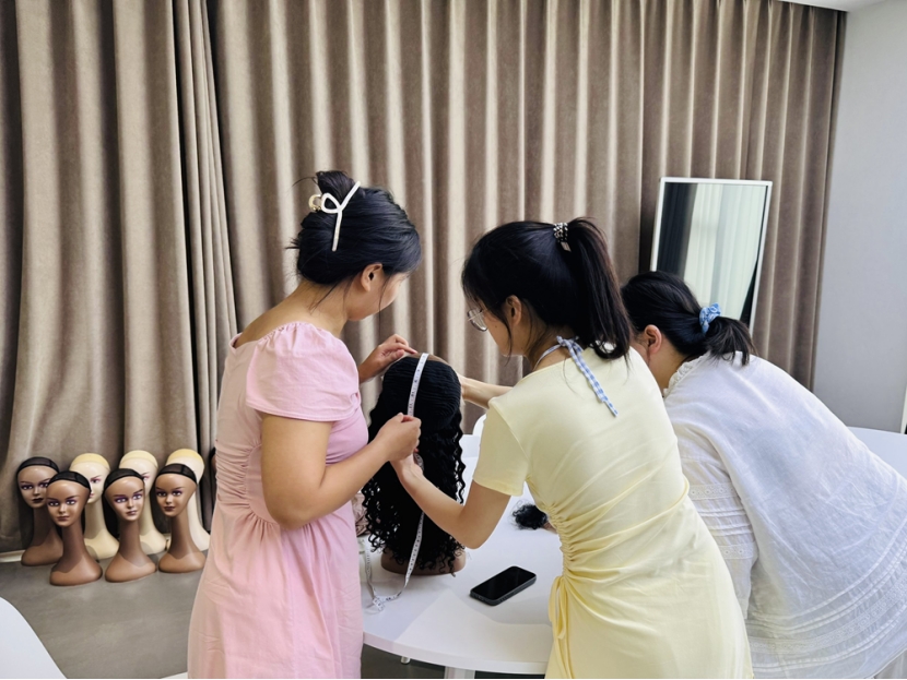 (OQ Hair员工在打理假发)