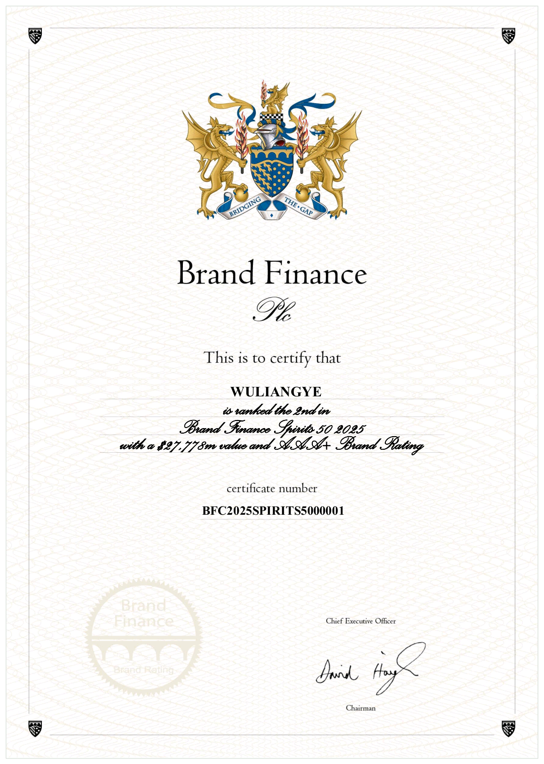 当地时间7月16日,《Brand Finance2025年度全球最具价值烈酒品牌50强》榜单报告(以下简称“榜单”)在英国伦敦发布。五粮液以277.78亿美元的品牌价值位列榜单第二名,品牌强度指数(BSI)得分为90.98分,品牌评级继续获评最高等级AAA+,在全球烈酒品牌中的核心竞争力进一步彰显。