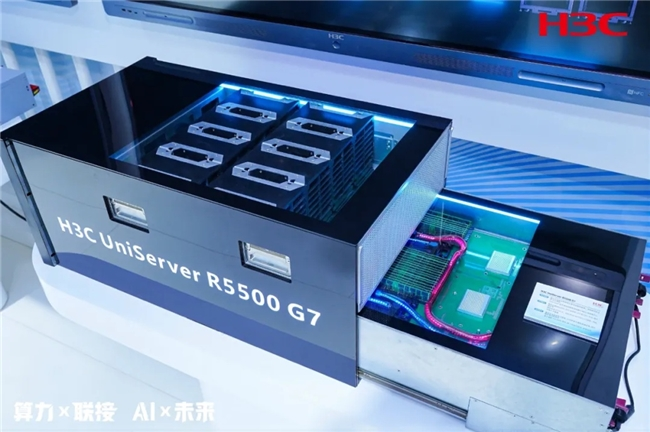 灵犀智算解决方案作为“AI in All”战略核心,以高效多元算力供给、高品质网络联接、海量数据并行处理、智能能耗治理、主动安全及智能运维六大能力集支撑AIGC需求,充分发挥“算力×联接”倍增效应,整合多元算力资源,与国内超15家主流AI芯片厂商深度合作,推动联接标准化与异构算力协同。多元异构算力平台表现亮眼——H3C UniServer R5500 G7支持万亿级参数大模型训练,采用模块化设计兼容OCP OAI开放标准;R5330 G7侧重大规模推理,支持8机64卡高速互联,兼容国产芯片,通过多元选择提升供应链保障能力。