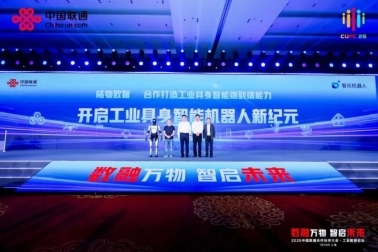 会上,中国联通大数据首席科学家范济安,联通数科高级副总裁、物联网事业部总经理、中国联通物联网研究院院长李研携手上海智元副总裁姜青松,通过创新形式发布工业具身智能机器人端到端能力。