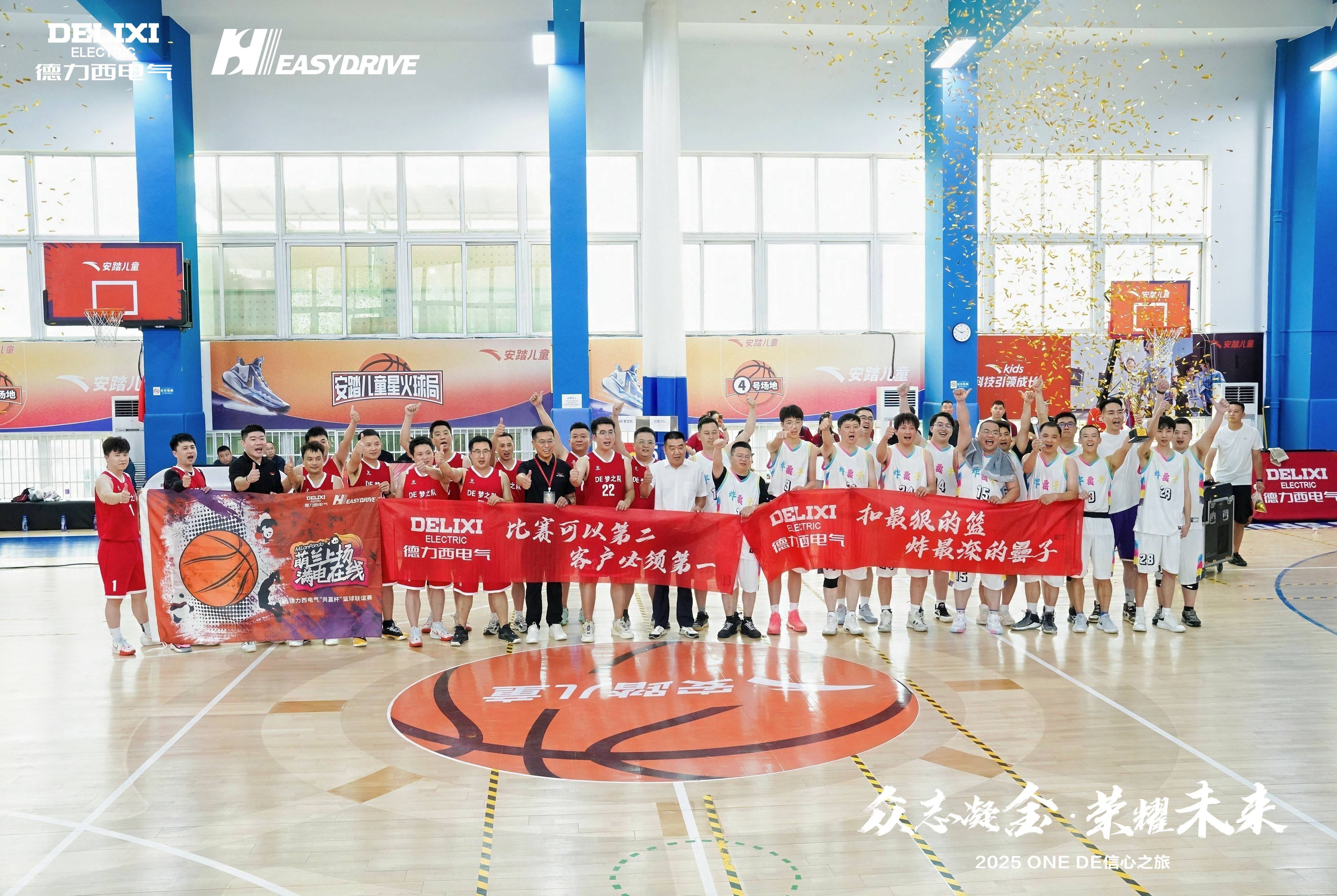 会议间隙,“共赢杯”篮球联谊赛燃情开战!赛场上,新生代“德二代”与员工代表队同场竞技,全力拼搏,让“共赢”理念在汗水中得到了升华。