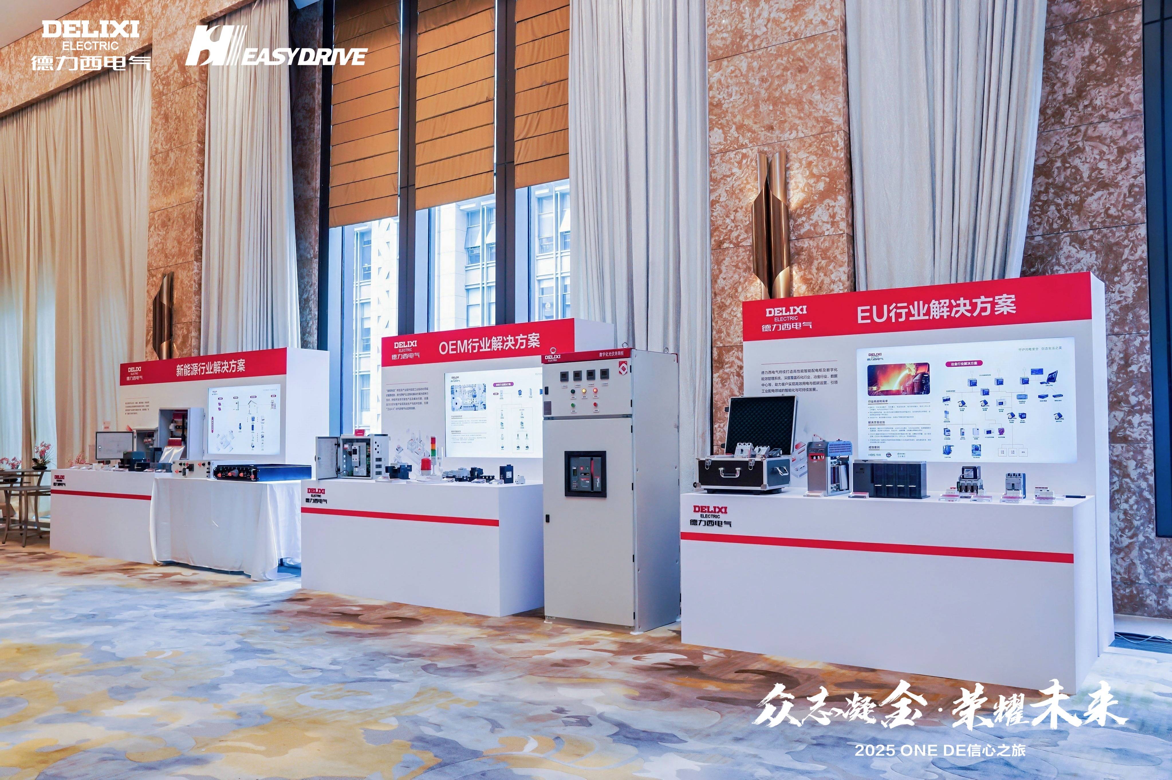 会议现场特设沉浸式产品体验区,德力西电气旗下配电、工业与新能源、家居、变频器、易驱等各事业部的创新产品与行业解决方案重磅集结,彰显了公司“一站式服务”的生态化布局优势。