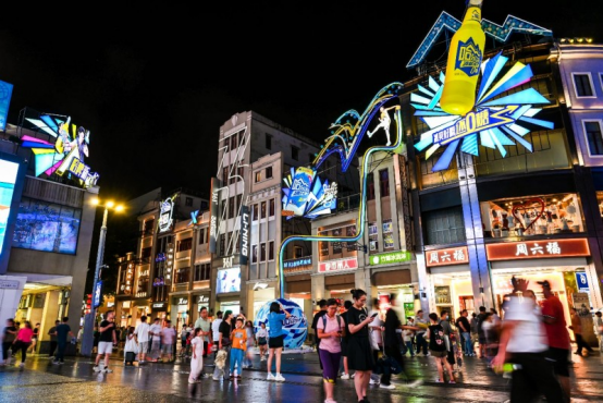 音乐之外,借助世界杯(FIFA)、国际足联俱乐部世界杯(FCWC,以下简称“世俱杯”)和NBA等全球顶级体育平台,百威中国也正逐渐成为中国消费者的“看球搭子”——从赛前聚会到赛事直播再到赛后小酌,百威中国逐渐渗透到中国消费者的“体育社交”场景里。例如在今年世俱杯期间,百威中国将观赛体验从场馆延伸至城市核心——它在上海南京路步行街设立了“百威共祝世俱杯荣耀时刻”主题快闪活动,通过设置球迷互动区与大型装置,结合表演和社交体验,吸引球迷与游客竞相打卡,以体育赛事为契机,撬动夜间生活经济的消费活力。