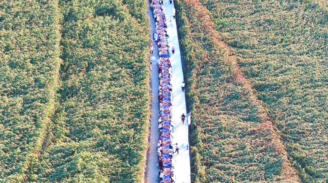 “红粱献瑞,五谷丰登。”丰收的热闹里,“丰收餐”备下满桌带着泥土气息的佳肴,款待远道而来的宾客,每一道菜品都凝结着地方饮食的独特密码。嘉宾围坐一堂,共同分享大地的馈赠与父老乡亲辛勤劳作的硕果,欢笑声与田垄里的高粱穗影交叠,宛如一幅写满丰收与温情的乡土画卷。