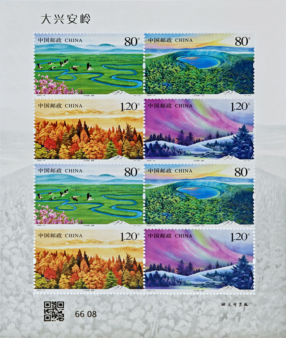 黑龙江省大兴安岭地区是我国最北生态安全防护屏障。8万余平方公里的林区,山脉绵延不绝,江河川流不息。在这里,多样的生物种类与茂密的大森林共同构成了独一无二的生态画卷。此次发行的特种邮票正是以大兴安岭丰富的自然资源和自然奇观为代表,艺术呈现我国北疆风光,传递守护生态、绿色发展的理念,成为展示龙江生态魅力的又一张“国家名片”。
