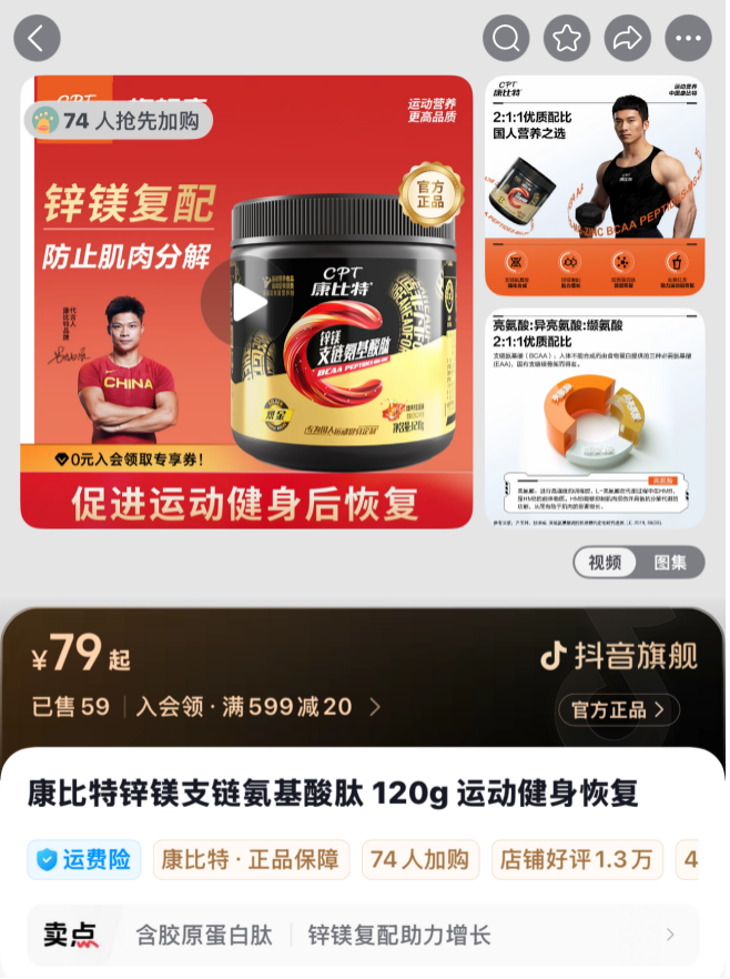 《经济参考报》记者注意到,上述产品在抖音和京东平台的康比特官方旗舰店均有售卖,售价为79元/罐。